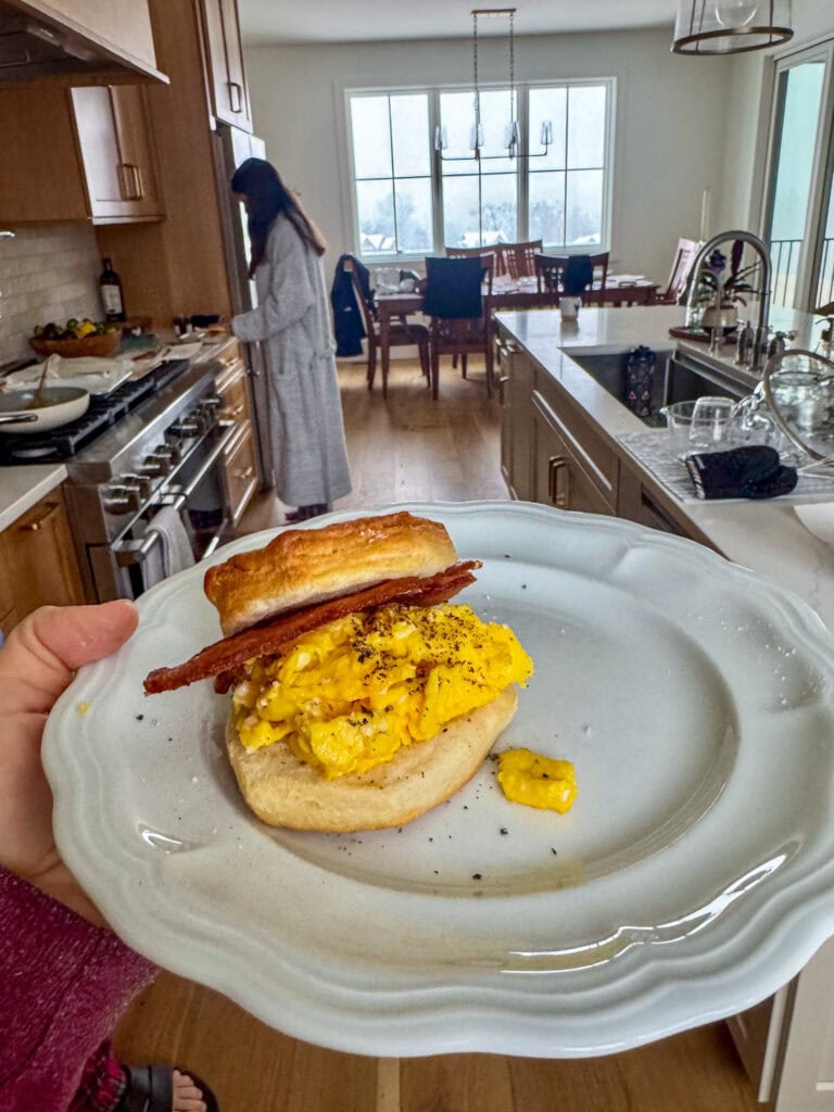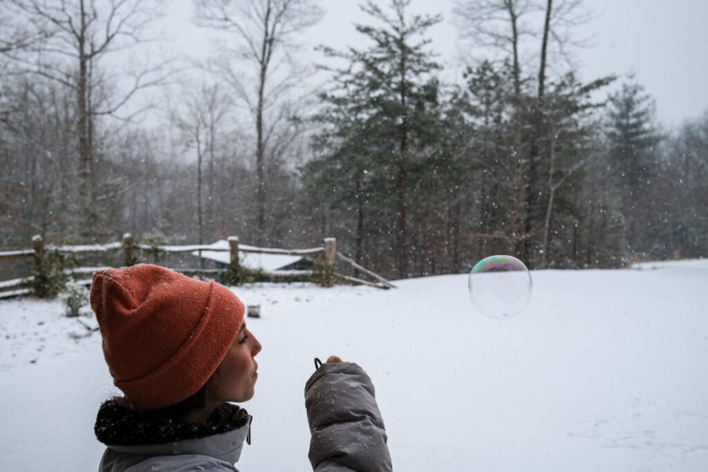 K wasted no time throwing on a few layers and mixing up a bubble concoction, determined to create a “frozen bubble.” It didn’t exactly work, but trying was half the fun and kept her happily occupied until the bacon and egg biscuits were ready.