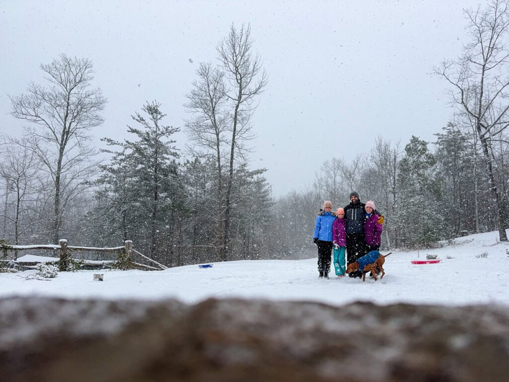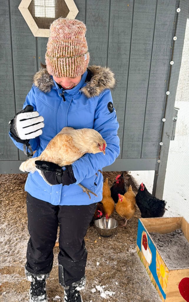 Devour we did—then immediately suited up and headed out into the wintery wonderland. The snow didn’t let up, and neither did we. Snowball fights, checking on the chickens (who were absolutely not fans of the white stuff), and meeting up with neighbor friends at the sledding hill filled our morning and spilled well into the afternoon.