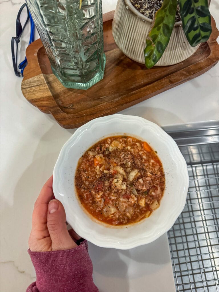 After waking up, I got to work on a pot of cabbage roll soup, which only added to the cozy atmosphere. Once we were warmed and refueled, we headed back out—this time to our neighborhood pavilion for round two of sledding. Even with a wood-burning fire going, the cold settled in quickly as the sun dipped low in the sky.