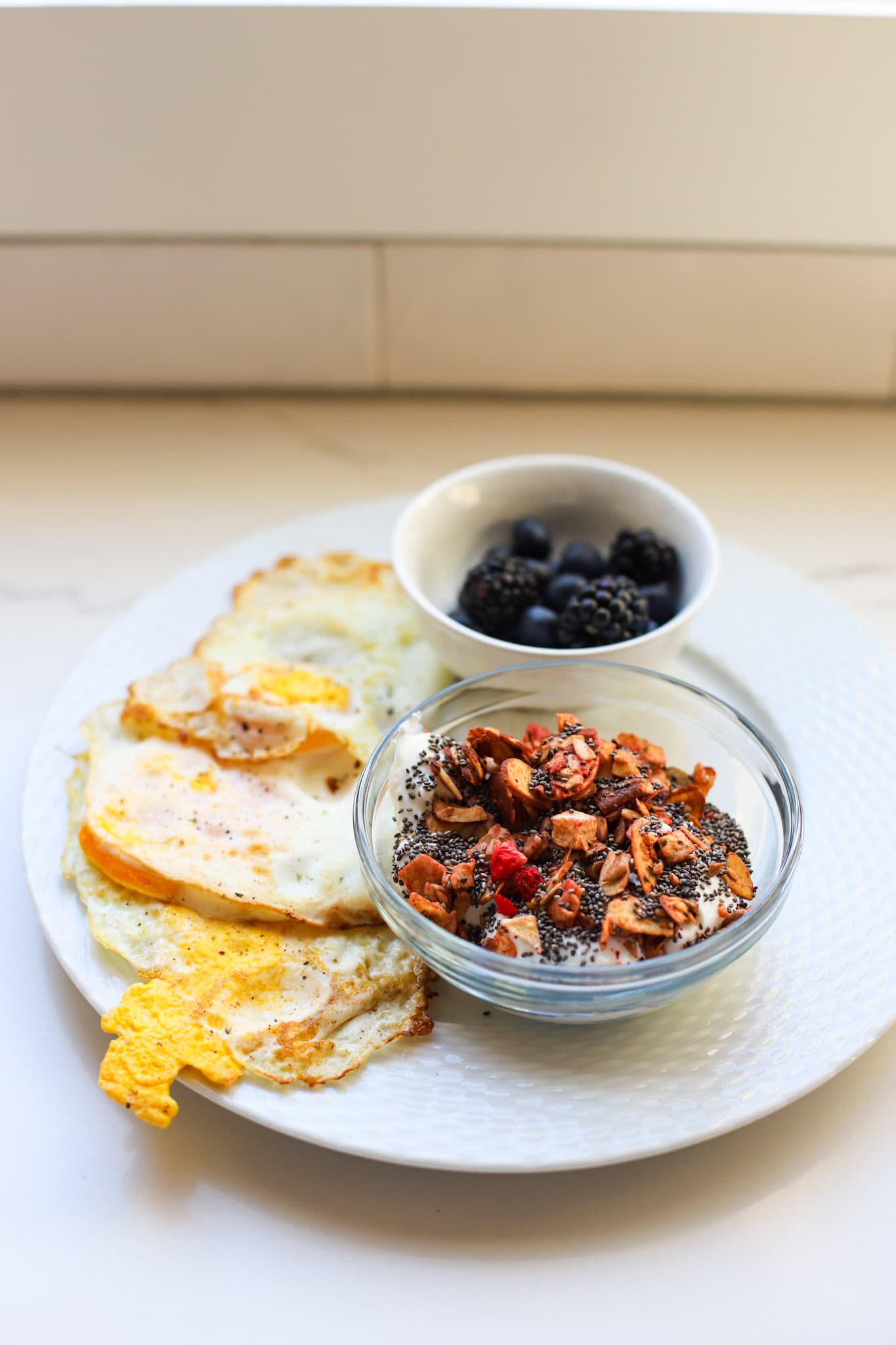 Also, yogurt and chia seeds. As an effort to incorporate more fiber and nuts and seeds, I’ve added yogurt (both Siggi’s and Culina’s coconut yogurt) to mine and David’s breakfasts, topped with a hearty serving of chia seeds and Seven Sunday’s Rise and Shine mix.