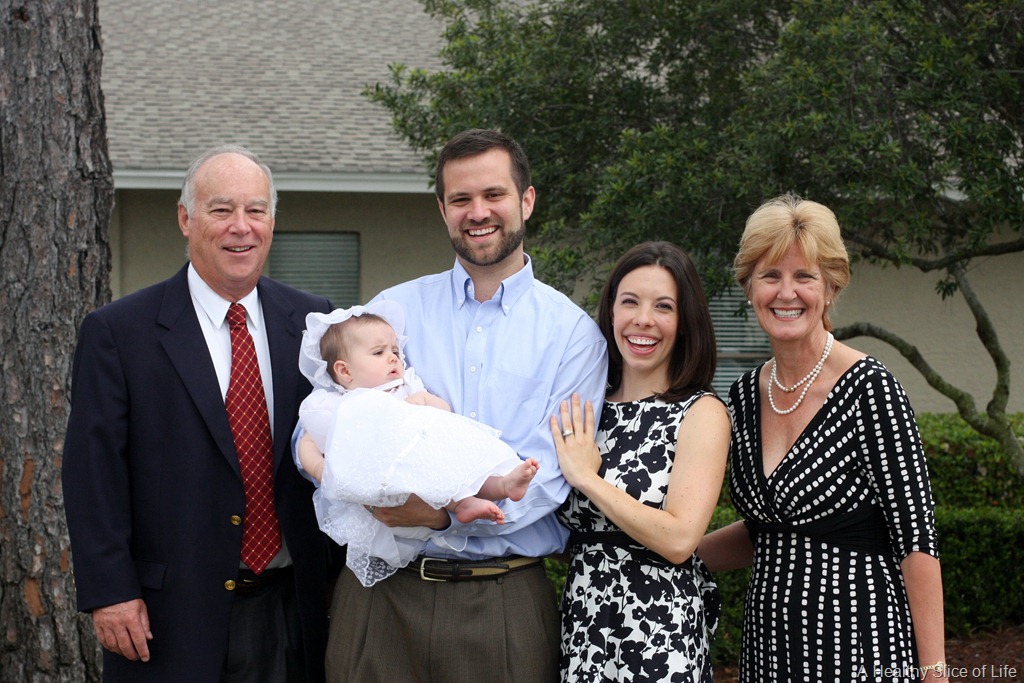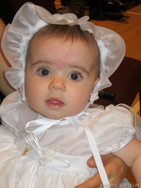Sunday morning Hailey was baptized. It was such a sweet event and she looked darling in her gown and golden cross with a pearl from Mema’s wedding dress sewn on it.
