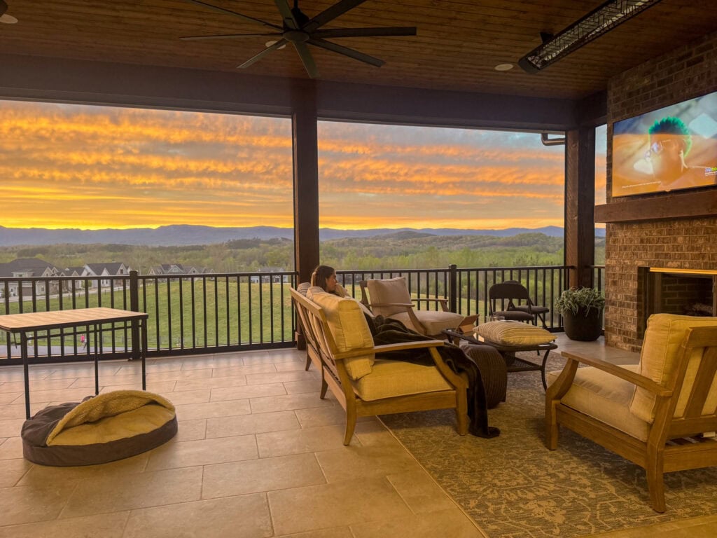 The clouds cleared in the afternoon giving way to sunshine and then an absolutely stunning sky as the sun set. The adults enjoyed a bit more chatting and the girls hung on the porch watching The Sound of Music and watching the day draw to a close.