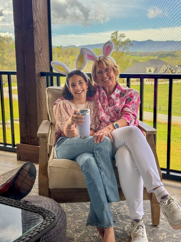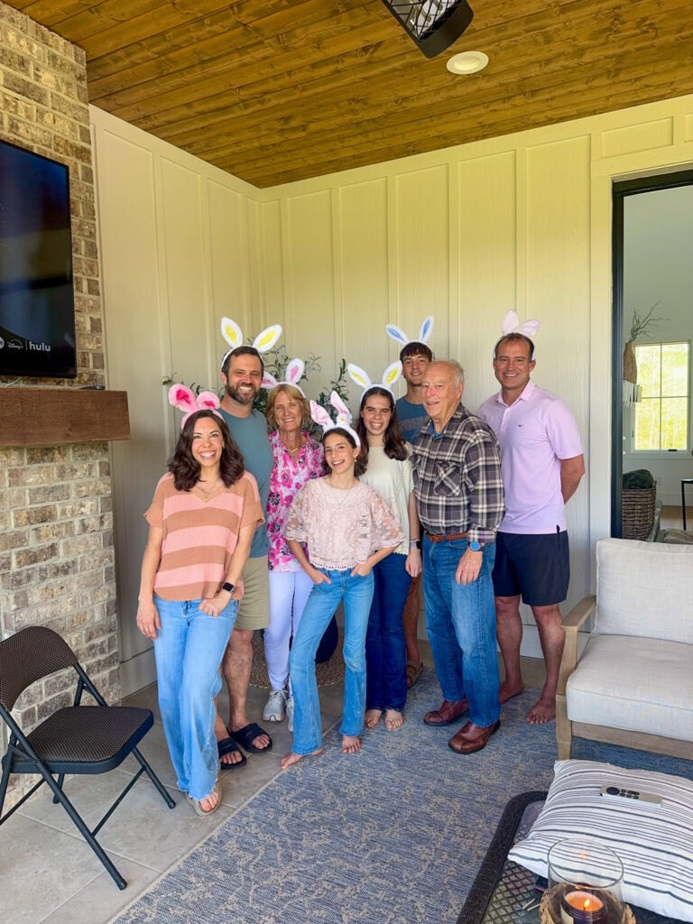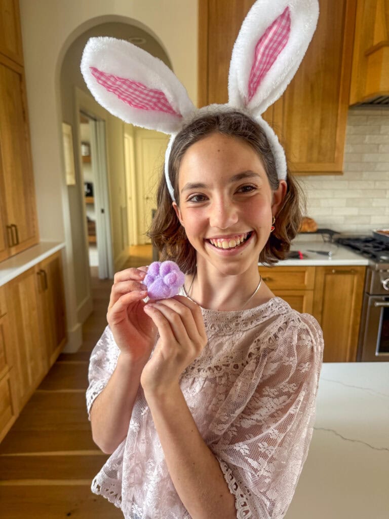 Everyone arrived early afternoon and the fun began. Getting a chance to just hang out and chat is so nice. We took them to check out the chickens and shared updated on other home projects we’ve been working on. We talked about school and sports and travel. K spent time making Taba Squishies from the kit she got for Easter. We appeased Mema by snapping a photo with all the bunny ears she brought and you’ll have to admit, it turned out pretty cute!