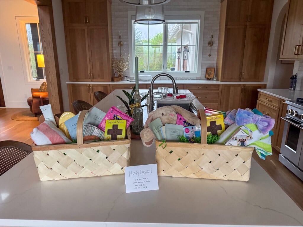 Easter morning was a little rainy, but cozy inside. The Easter Bunny came and an egg hunt ensued. The little chocolate bunnies and the tokens for a new book, a later bedtime, and a sweet treat were big hits.