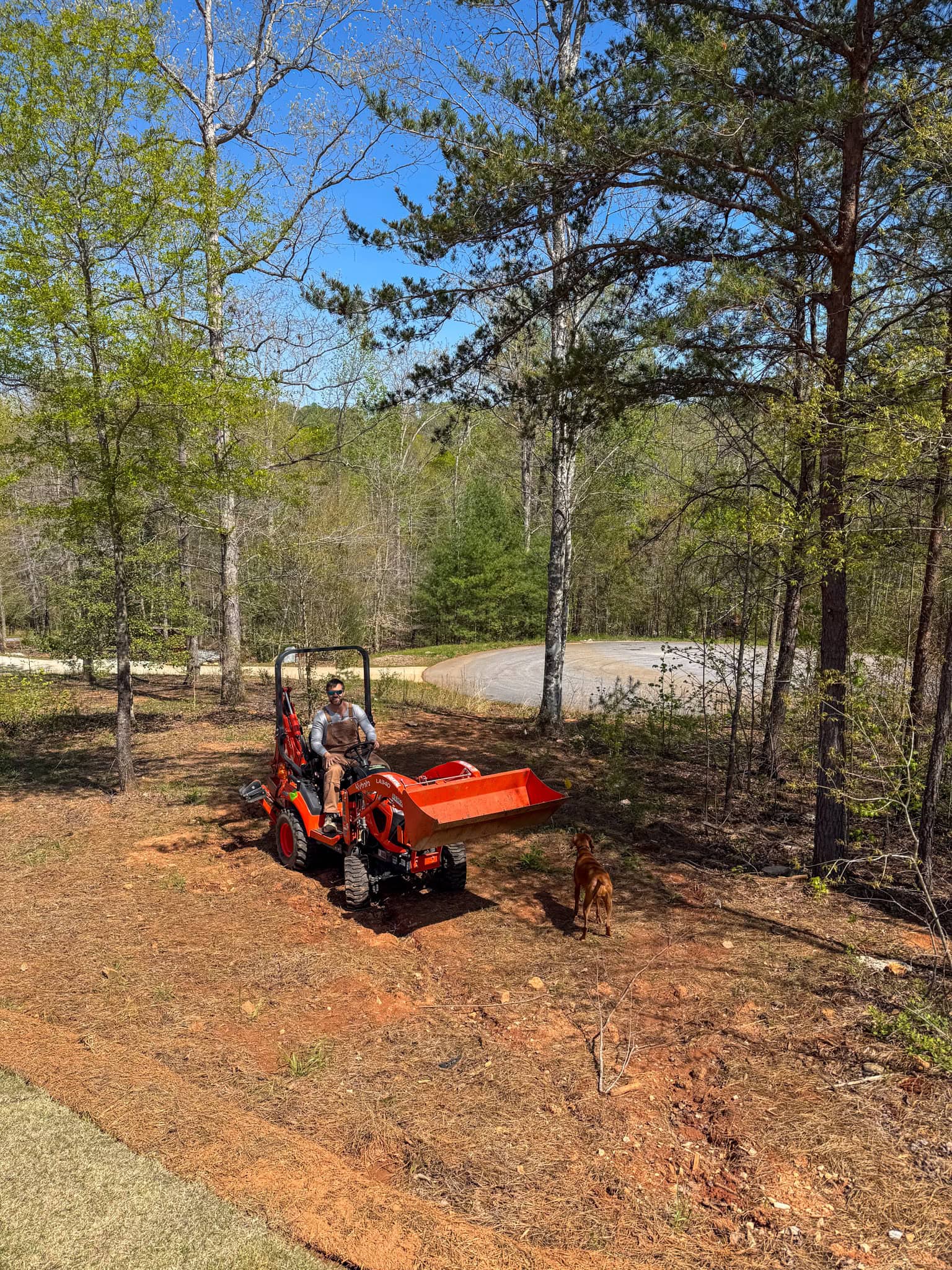 I’m trying not to be annoying and refer to our new digs as life on the farm all the time, but it is what I want to call it. I just love how much we are outside now. We hike more, bike more; the kids play outside more and David has more outdoor projects. One of those big projects is building out chicken coop! Last weekend he rented a skid steer to level out the coop grounds and dig a drainage trench. He’ll start building it over the next few weeks and our chicks arrive in June!