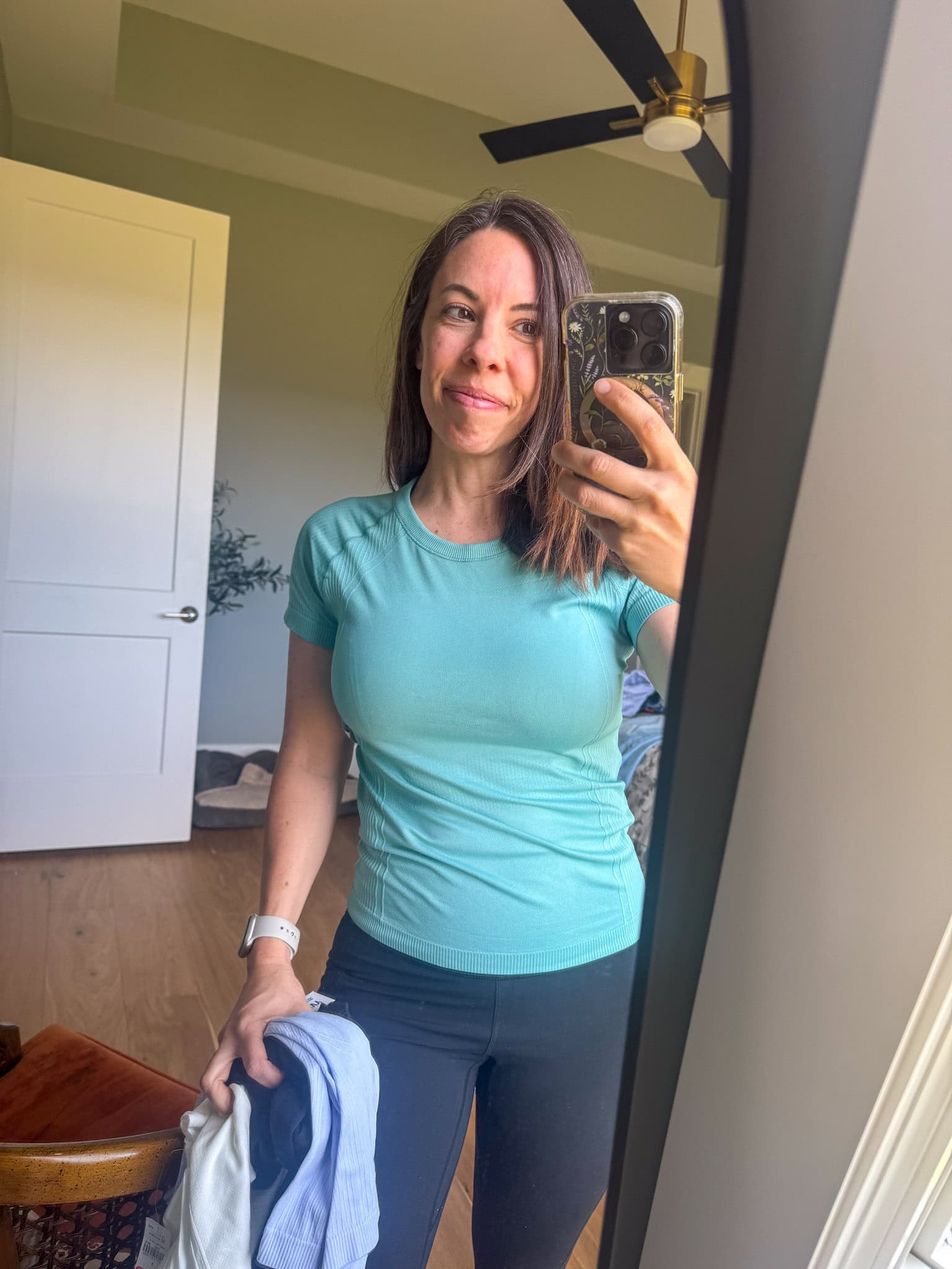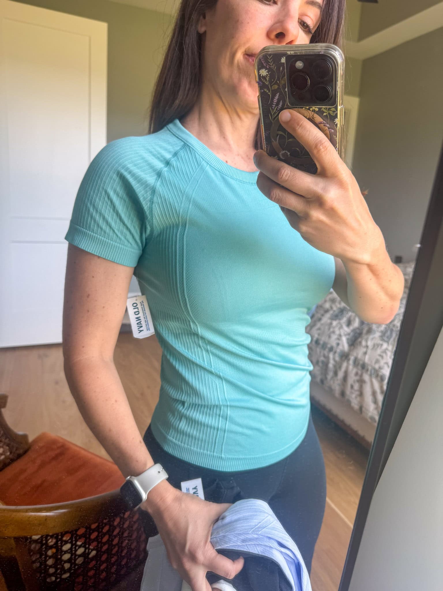 I ventured into Athleta the other day looking for some workout tops. Usually a store I really like, I was disappointed to find most of their current offerings to be shapeless, large, drapey, thin and rather unflattering on me. They aren’t inexpensive either so I left a little frustrated and ran by Old Navy. I found a gray workout top there that I grabbed without even trying on and headed home. Well, what do you know, two weeks later it was my favorite top! It fits well, washes well, is comfortable, and a great price. So I stocked my spring wardrobe and bought one in every color they had in my size! If you need a great basic workout top, I highly recommend this one!