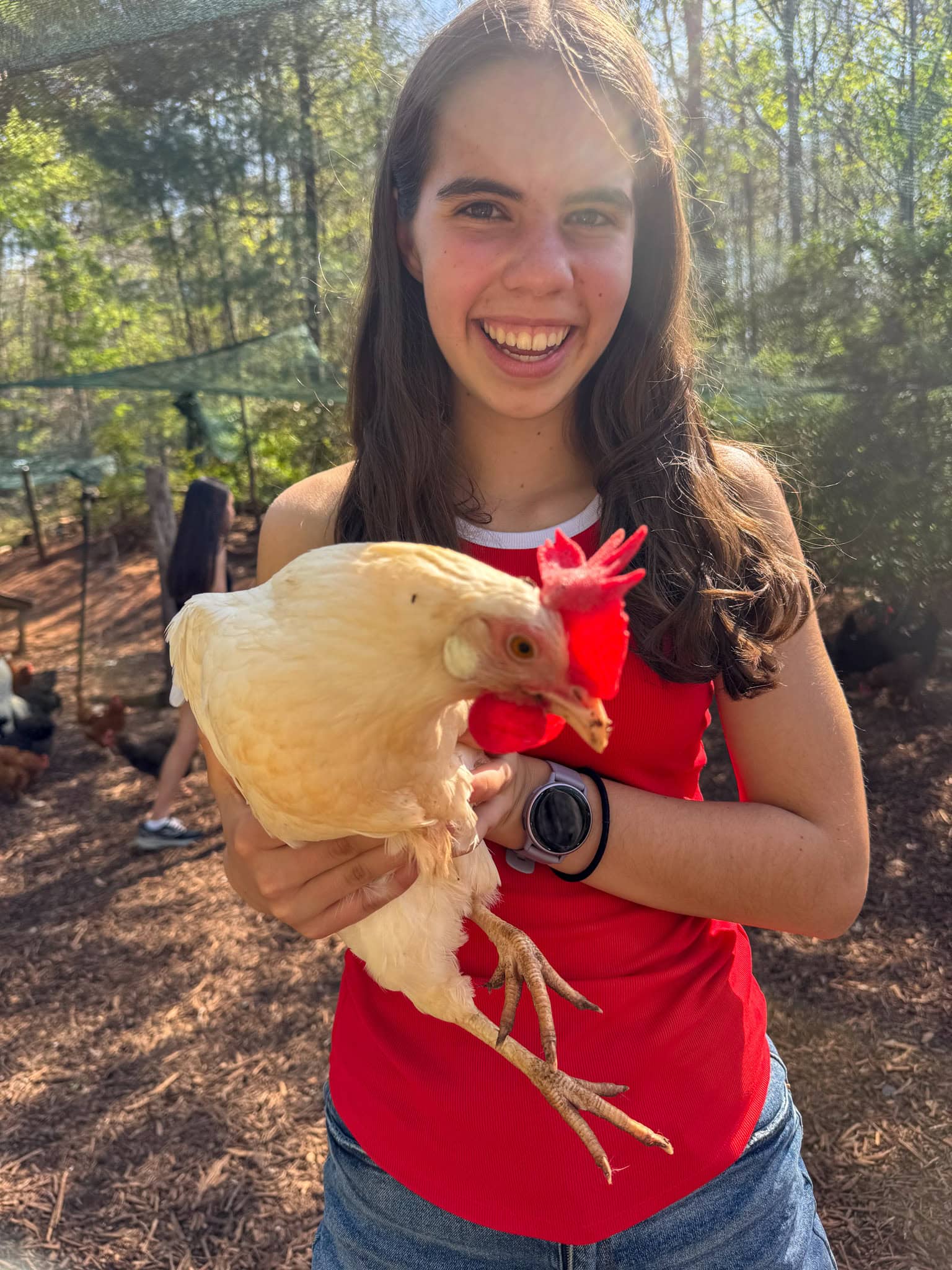 In the meantime, I’ve officially signed up for chicken duty for our community flock of about 60 hens and 2 roosters. With many volunteers, it makes for light work, but once a week the girls and I have the responsibility to feed, water, and check on the chickens. My favorite part of this is how much the kids love it. They have dedicated chicken boots and ask to go visit the chickens often. Hailey has gotten bolder about picking them up and Kaitlyn loves feeding them meal worms.
