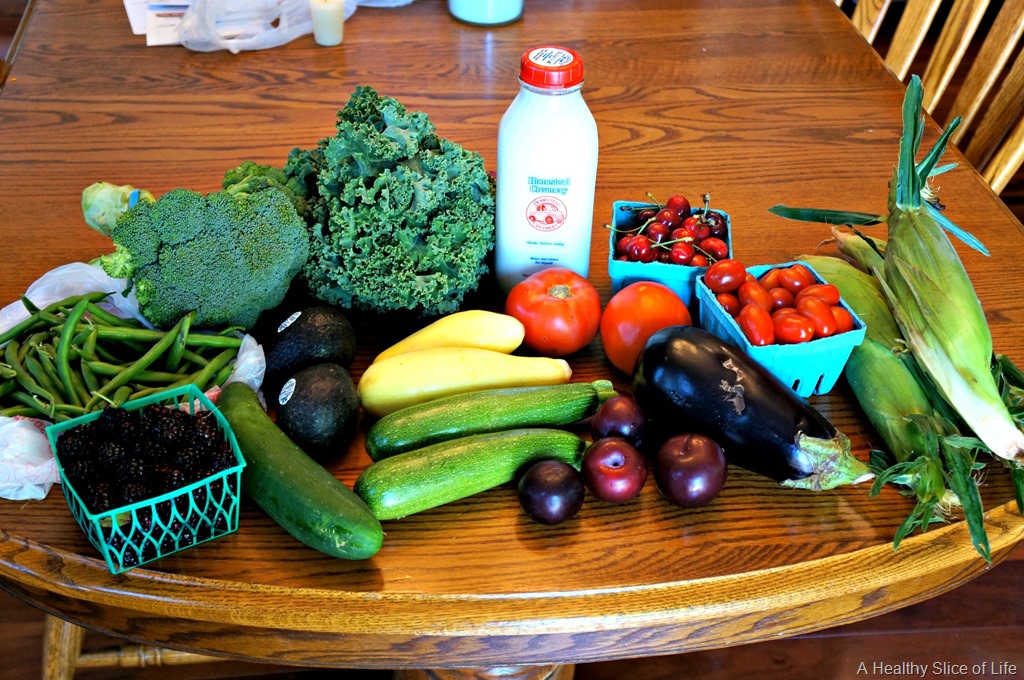 I’m not just talking about Hailey running around shoving handfuls of cherry tomatoes and blackberries in her mouth, though that did happen. I’m talking about ME shoving beautiful produce in my basket willy nilly, without a plan.