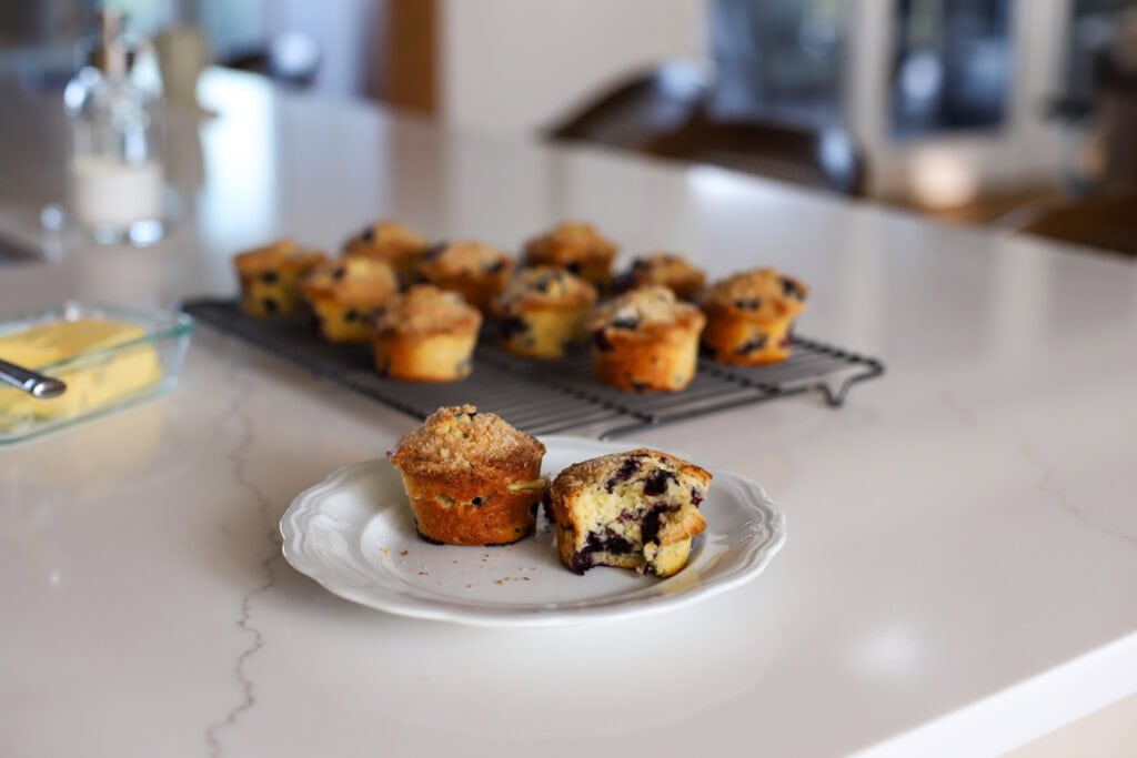 A recipe I feel like you need to know about are these bakery style blueberry muffins. These are not an added-protein or low sugar kind of recipe, but if you want your family and friends to say omg these are so good, then this is your recipe. I made them again on Saturday before the girls’ soccer games and they were a huge hit.