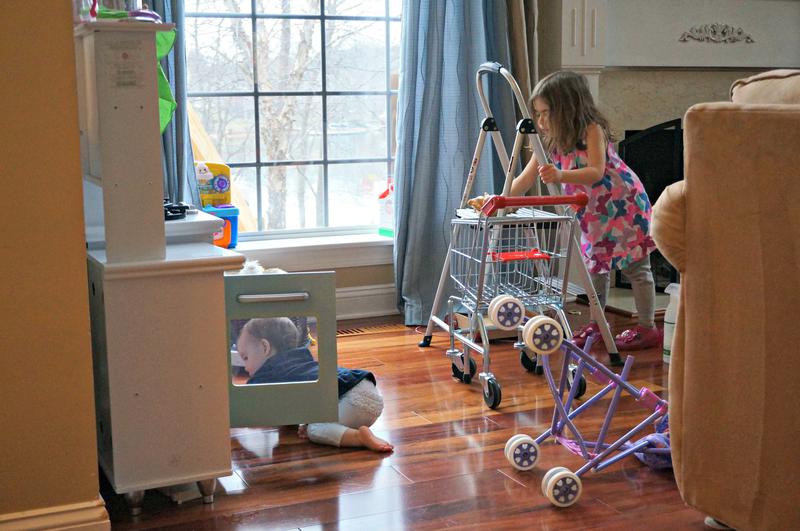 She willingly crawled around wiping up Koda’s paw prints (there are a lot of those), then continued to clean her toys and her kitchen. Such an occurrence needed to be documented.
