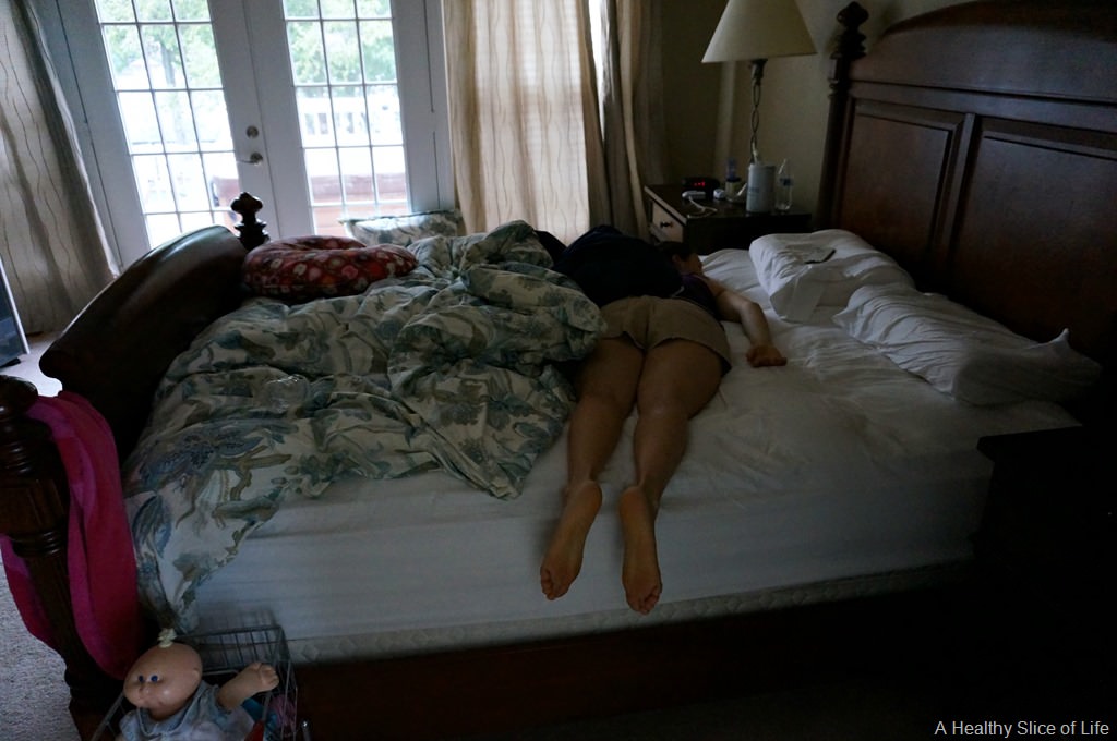 The first picture is killing me! What is it about naps and sleeping the wrong way in the bed? I do the same thing, i think because then it feels less official.