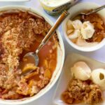 Thanks to a recent BOGO sale at our local Publix, my freezer is stocked with plenty of Mayfield Creamery Ice Cream flavors, but for peach cobbler, it’s tough to beat a classic vanilla.